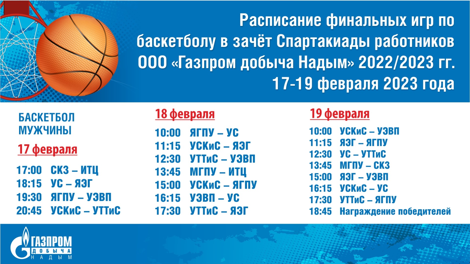 Финальные игры по баскетболу в зачёт Спартакиады работников ООО "Газпром добыча Надым" по баскетболу сезона 2022/2023 годов.