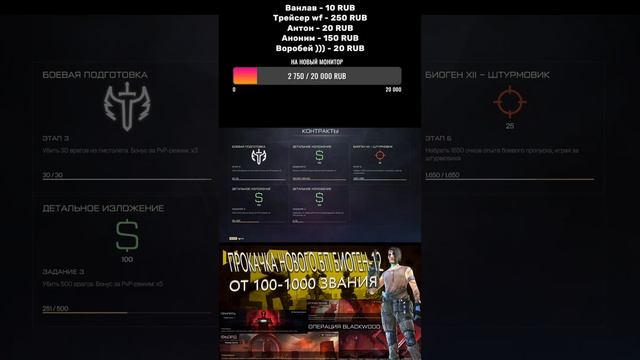 ПРОКАЧКА НОВОГО БП БИОГЕН-12(ОТ 100-1000 ЗВАНИЯ ) #shorts #warface #варфейс #stream #streamer #streaming #стрим Спасибо Всем кто мня поддерживает, Я безумно благодарен Вам!!Большое спасибо) Буду рад новым подписчикам, и не забудьте про ))) Ставьте лайки, рассказывайте друзьям и обязательно комментируйте и подписывайтесь ПОДДЕРЖКА КАНАЛА https://www.donationalerts.com/r/fanta3030 ваш трек чтобы прозвучал 50р