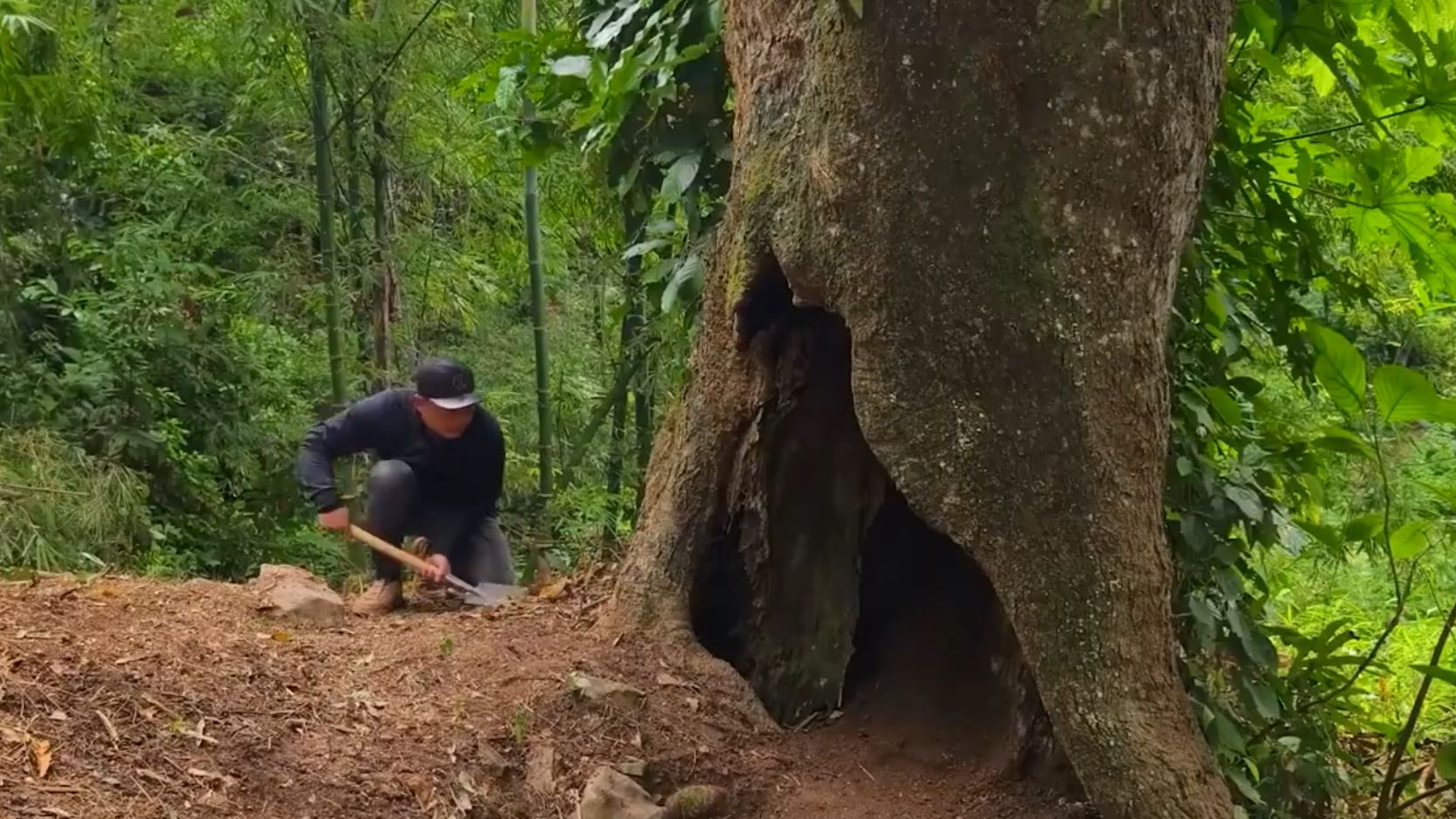 Я нашел большое старое дерево и построил внутри него тайный дом. Бушкрафт