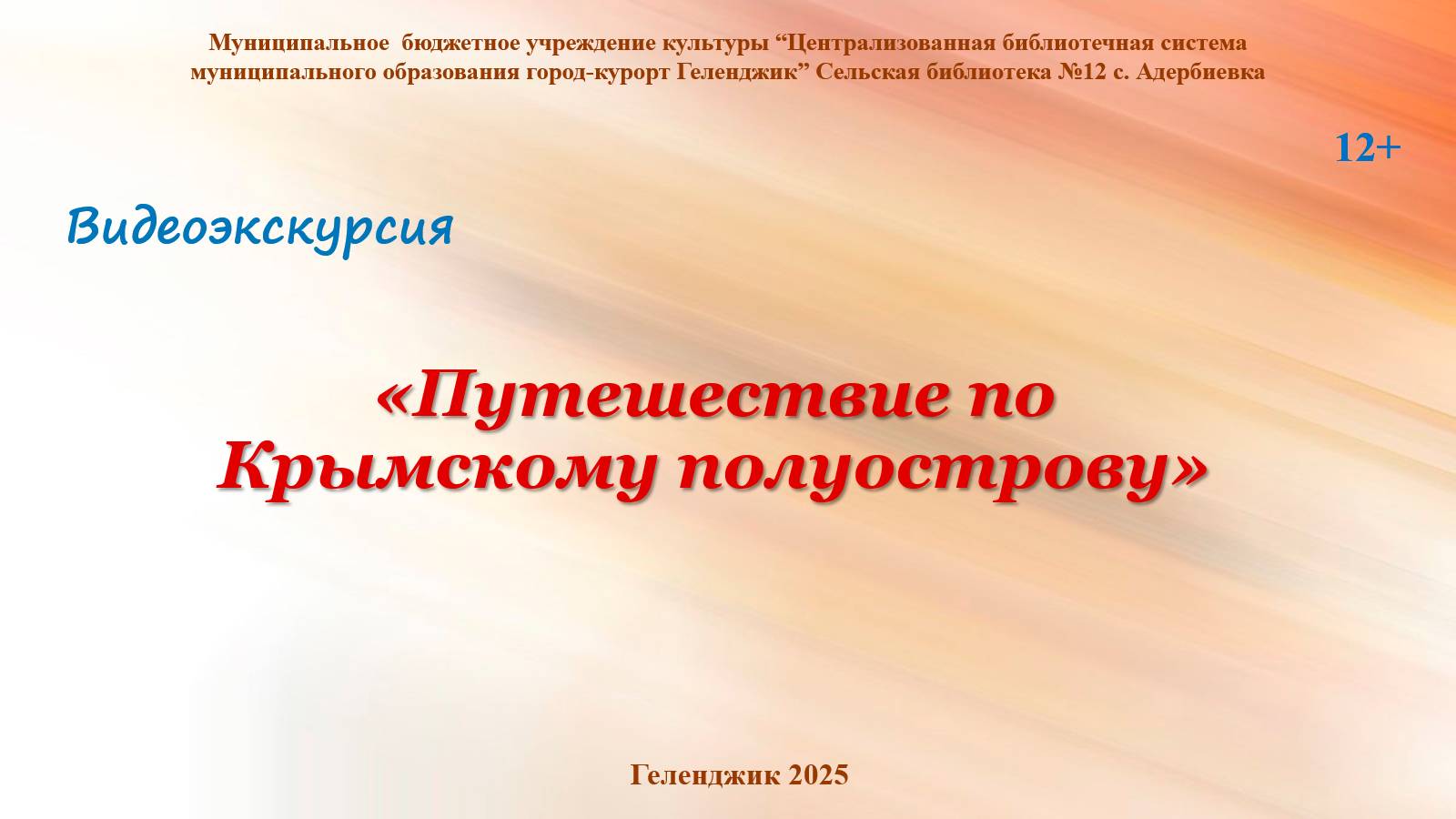 18 марта 2025 года – одиннадцатая годовщина воссоединения Крыма и Севастополя с Россией. Для всех жителей Крымского полуострова это событие стало поворотным в их жизни. Крым и Россия снова воссоединились и уже – навсегда. К этому знаменательному событию, Сельская библиотека № 12 с. Адербиевка представила видео-экскурсию «Путешествие по Крымскому полуострову». Читатели узнали много интересного об истории возникновения полуострова Крым и значимости этого исторического события, о его богатейшей природе и самых известных достопримечательностях, о городе Севастополе. А также совершили виртуальную экскурсию по окрестностям Крымской республики и познакомились с основными его достопримечательностями, такими как Ласточкино гнездо, Мраморная пещера, Гора Ай-Петри и др. #ЧитающийГеленджик, #БиблиотекиГеленджика