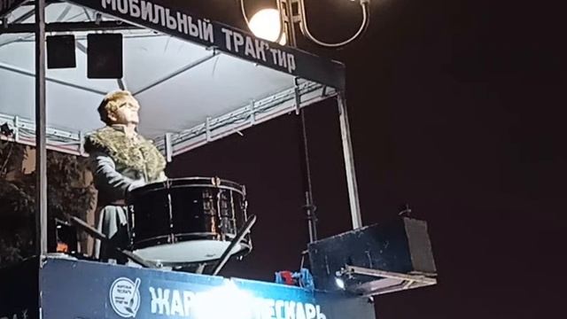 В дни святок чего только не увидишь на Кубани. Вот живой пример - человек в костюме траппера на барабанах провозглашает свободу русского рока... Воистину, здесь Русский дух, здесь Русью пахнет, и никому иному не понять той глубины, которая стоит за дикой простотой и искренностью...