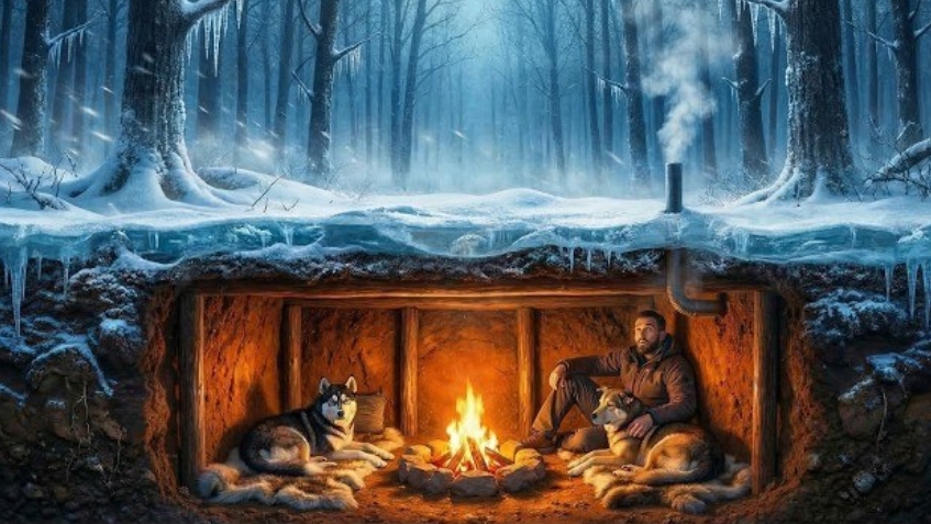 Выживаю с моей собакой зимой в подземном укрытии.
