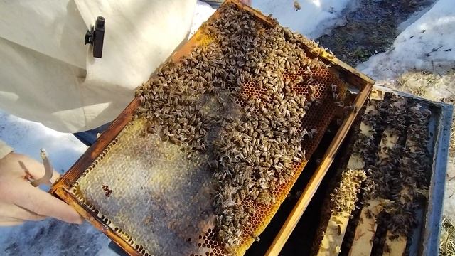 на улице температура +10 проверяю состояние семей после зимовки