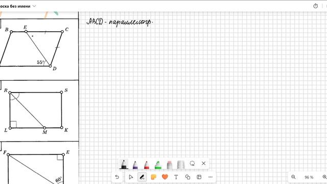 00:00:00 В параллелограмме MNPK ∟MNK=45°, ∟KNP=65°. Найдите неизвестные углы. 00:15:23 Дан параллелограмм ABCD. На стороне BC отмечена точка Е так, что EC=CD, ∟ADE=55°. Найдите неизвестные углы. Геометрия 8 класс. Балаян Э.Н. Геометрия : задачи на готовых чертежах для подготовки к ГИА и ЕГЭ: 7-9 классы Таблица 3. Свойства параллелограмма. Найдите неизвестные углы. Ссылки на видео с разбором теории: Свойства параллелограмма часть 1 : https://dzen.ru/video/watch/647cb8be9373300bcb67af2a Свойства параллелограмма часть 2: https://dzen.ru/video/watch/647cb8be9373300bcb67af2a Признаки параллелограмма: https://dzen.ru/video/watch/647dd8d7bef4410d8d4191e8 Прямоугольник, ромб, квадрат: https://dzen.ru/video/watch/64b0284fe64da5179451d102
