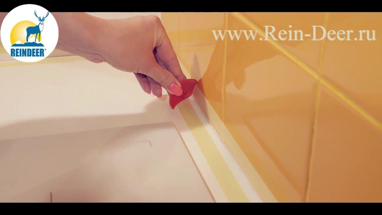 Способы заделки и выравнивания шва между плиткой и ванной при помощи силиконового герметика Penosil.