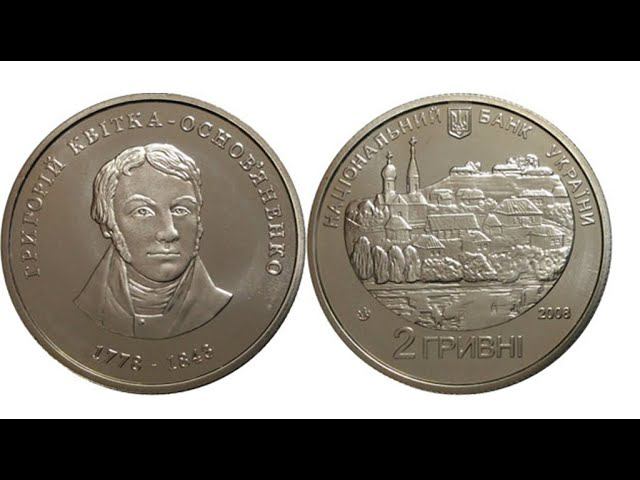 Украина 2 гривны, 2008 г. "230 лет со дня рождения Г.Ф. Квитка - Основьяненко"