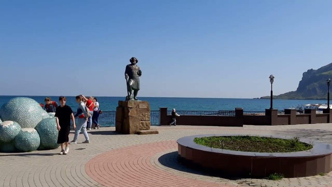 Прогулка по поселку Коктебель (набережная, памятник Волошину и т.д.) часть 1. в следующих частях смотрите посещение мест показанных в этом видео как виды (Карадах с суши и моря, мыс Хамелеон, мыс Крокодил, гора Верблюд, обзорная площадка Звездопад воспоминаний).