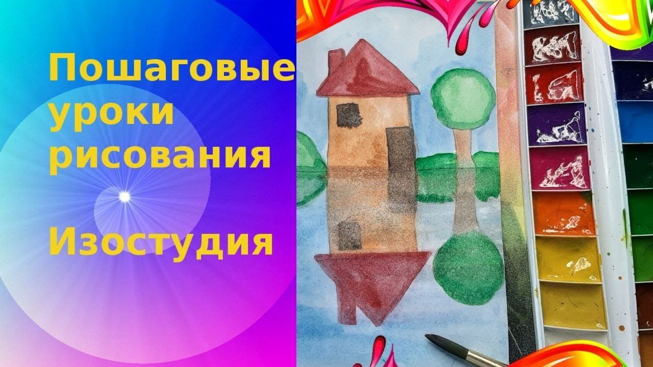Рисуем домик красками. Урок ИЗО. Как нарисовать домик и его отражение в воде.