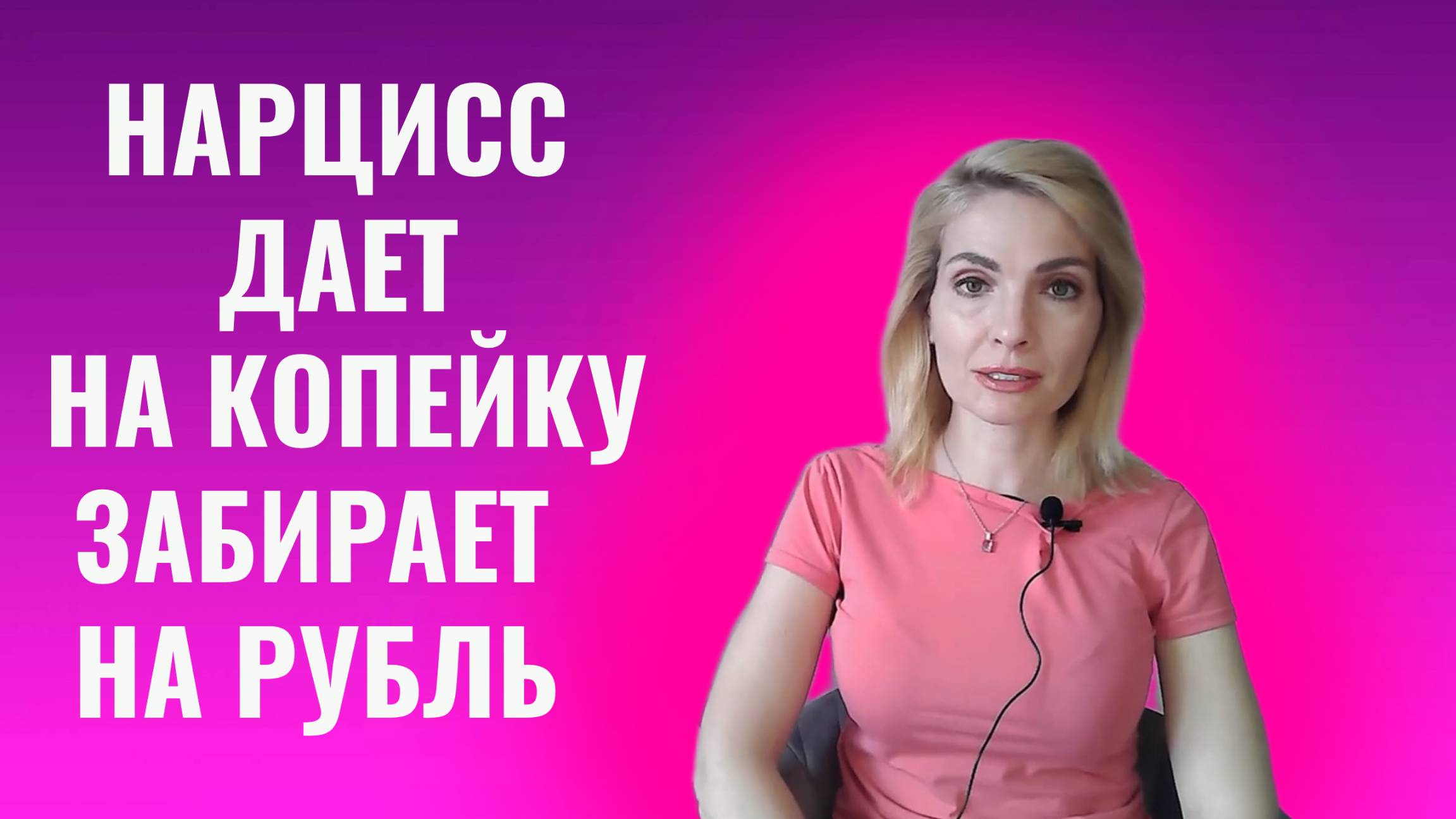 Вера Бокарева, психолог, сексолог, коуч, в этом видео: Нарцисс дает на копейку, забирает на рубль Запись на онлайн-консультацию Веры Бокаревой: WhatsApp / Viber / Telegram: +7-963-231-37-12 verabo-hello@yandex.ru Телеграм-канал Веры Бокаревой https://t.me/verabokareva Телеграм-канал "Психология и коучинг с Верой Бокаревой" https://t.me/bokarevavera_psycoach #нрл #нарциссы #психопаты #онлайнпсихолог #психология #психологияотношений #семейныйпсихолог #мужскойпсихолог #женскийпсихолог #психотерапия #психологонлайн #психолог #нарцисс #манипуляция
