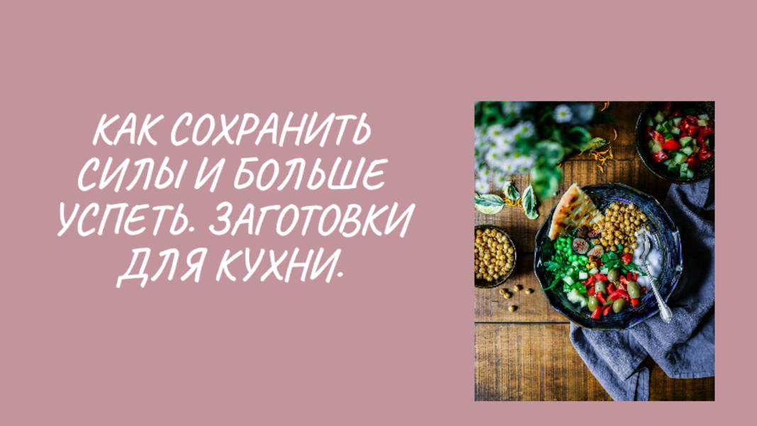 Заготовки экономят время, ресурсы и упрощают жизнь. Приготовить два вида каш в контейнерах. Запечь две полки мяса. Заморозка овощей, ягод и зелени. Тушёная курица или рыба с овощами и специями. Куча сырников и часть их заморозить. Квашенная капуста и солёные огурчики в помощь. Вы сэкономите газ, воду, электричество, меньше мыть посуды. Заготовить селёдку солёную с пряностями, тефтели и фарш, холодец и хреновину, блинчики и отварную свеклу. Заготовить тушёнку и костный бульон для первого блюда, грибы и кукурузу. Эти лайфхаки помогут скорректировать вес и поправить здоровье, уменьшить время на кухне и сэкономить бюджет. Смотрите видео до конца. Здесь делюсь своими мыслями. Подписывайтесь на канал, кому покажется интересным наше общение. Кто просил для поддержки канала: 2202 2009 4642 2647 На индивидуальную часовую консультацию ( платно) можно записаться через WhatsApp. +7 917-760-73-81. Всегда рада выслушать, вдохновить, смотивировать, поддержать и помочь принять верное решение! Найдём вашу сильную сторону. Яндекс Дзен https://dzen.ru/larezl Ютуб канал https://www.youtube.com/channel/UCr0kJVreL86RDexycnRaDkw RuTube https://rutube.ru/channel/23744720/