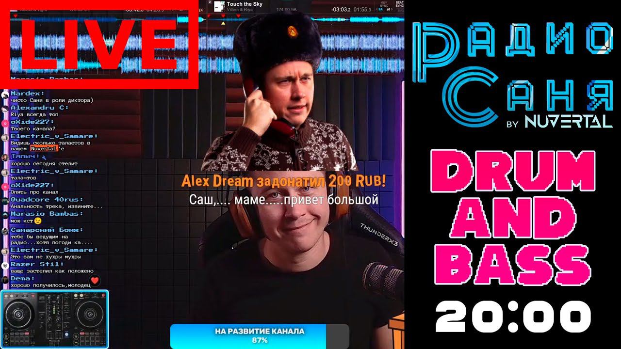 ДОНАТ в эфире: https://www.donationalerts.com/r/nuvertal Оффлайн донат: 4276 3000 1462 0176 или https://pay.cloudtips.ru/p/273fde77 Еженедельное Drum & Bass шоу от Nuvertal, приправленное юмором и позитивом! Мерч: https://vk.com/nuvertal_music?w=product-50343323_9222852 Общий чат: https://t.me/radio_sanya TG: https://t.me/nuvertal_music VK: https://vk.com/nuvertal_music Стол заказов: 22:30-23:00, донат от 1000р, название и исполнитель трека в текст доната. Играю ваш любимый трек на СЛЕДУЮЩЕМ стриме (если пройдет проверку и меня за него не забанят). Стол заказов: 22:30-23:00, донат от 1000р, название и исполнитель трека в текст доната. Играю ваш любимый трек на СЛЕДУЮЩЕМ стриме (если пройдет проверку и меня за него не забанят). Треклист: 00:00:00 Начало 00:01:37 DJ Marky, Alibi, Charli Brix - Natural Feeling 00:03:36 IYRE, Breezy Lee - Fortune Favours 00:07:44 Ayah Marar, Genetics - Take Me Back 00:09:17 Grinda + Zigzag - Winter Road (feat M4mind) 00:11:00 Jessee, Mila Falls - Only You 00:13:42 Zombie Cats, Waeys - Left Nothing 00:15:51 Brother - Blue Notes 00:19:32 Netsky - I Refuse (Shock One Remix) 00:22:31 Phase, Viv May - Albatross 00:24:19 Pola & Bryson - Diamonds Fall (feat Loz Contreras) 00:26:10 Total Science, MC Conrad - Soul Patrol (Lenzman Deep In Your Soul Remix) 00:27:58 Grimesy, Sahala - Who You Are 00:32:01 Toronto Is Broken, Mykool - Horizon 00:33:52 Nuvertal - Youth DJ 00:35:40 Andromedik, Ayah Marar - Tomorrow 00:37:30 Blooom - Drowning 00:39:30 CRCLE & Gid Sedgwick - Oscillate 00:40:58 Document One, Doktor - Okay 00:42:25 Jon Void - Your Love 00:43:54 Natty Lou, Nes Mburu - Mi Nawe 00:46:27 Seba, Kirsty Hawkshaw - Painted Skies 00:48:38 Something Something, Kleu - All My Life 00:50:07 Sub:liminal, Syren Rivers - Your Secrets 00:52:40 Hiraeth - The Journey 00:54:30 Maduk - Coming Down (Etherwood Remix) 00:56:16 Sapphire - Princess Of The Sands 00:58:25 Sonication - Let It Rain 01:00:16 Zubes - Have You Ever 01:01:44 David Boomah, Navigator, Benny Page - Warriors Selecta (J-Man Remix) 01:04:39 KNGHT - Next To Me 01:07:33 Maduk - Still In Love (S.P.Y Remix) 01:09:20 KNGHT - Next To Me 01:10:52 Netsky - Everyday 01:12:42 Weynorx - Academic Town 01:14:30 Audioscribe - Magnetize 01:16:20 Exploid - If You Can't 01:18:31 Keeno, Fæ Vie - Disappear 01:20:22 Lenzman, Kevin King - Starz (LSB Remix) 01:22:32 Soul Intent, Chromatic - Twister 01:24:01 Axel Boy, Aleya Mae - Low High 01:26:43 High Contrast, Selah Corbin - The Agony & The Ecstasy 01:28:57 Keeno - As One (feat Pat Fulgoni) 01:30:25 Mykool - Your Love 01:31:30 Pola & Bryson, Goddard., Lens - Way Up 01:32:59 Maduk, Amanda Collis - Fire Away (Fred V Remix) 01:34:26 Mc Fava, Makoto, A-Sides - Reminder (feat Sofi Mari) 01:35:53 Blame - Stay Forever 01:37:22 Break, Fox - Code Red 01:39:33 Chew Lips - Karen (Netsky Remix) 01:41:45 Furlonge, Katie Alley - This Love 01:43:35 Redeyes - Poetry In Motion (Utah Jazz Remix) 01:46:08 Tengu, Montiix - Walk Away 01:47:36 DNMO, Wolfy Lights - Blinding 01:49:04 Hiraeth - You (and me) 01:50:32 Lenzman, Martyna Baker - Paper Faces (Ivy Lab Remix) 01:52:42 Motiv, Luke Truth - Done For Me 01:54:05 MVMXL, Spree Wilson - Starcloud 01:55:16 Seathasky - Through It All 01:56:44 Grafix, Lenn - Say It Now 01:58:10 Break, Charli Brix - Lost 02:00:22 Nelver - Jazzy Heart 02:01:51 Quartz, Vanity Jay - Moving With Time 02:03:40 Qumulus - Bittersweet 02:05:06 oneBYone, Nuvertal - And I Will Burst 02:06:56 LowRIDERz, Shiny Radio - Fuck Tha Intelligent (Nuvertal Remix) 02:11:36 Полиция донатов 02:12:46 Бонус