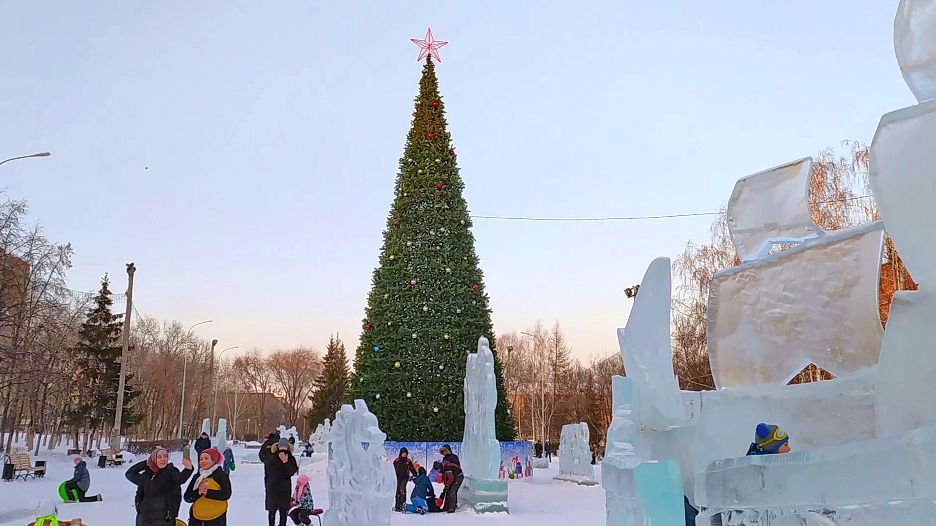 Магнитогорск, зимний сквер Консерваторский, новогодняя ёлка и ледяной городок (30.12.2019)