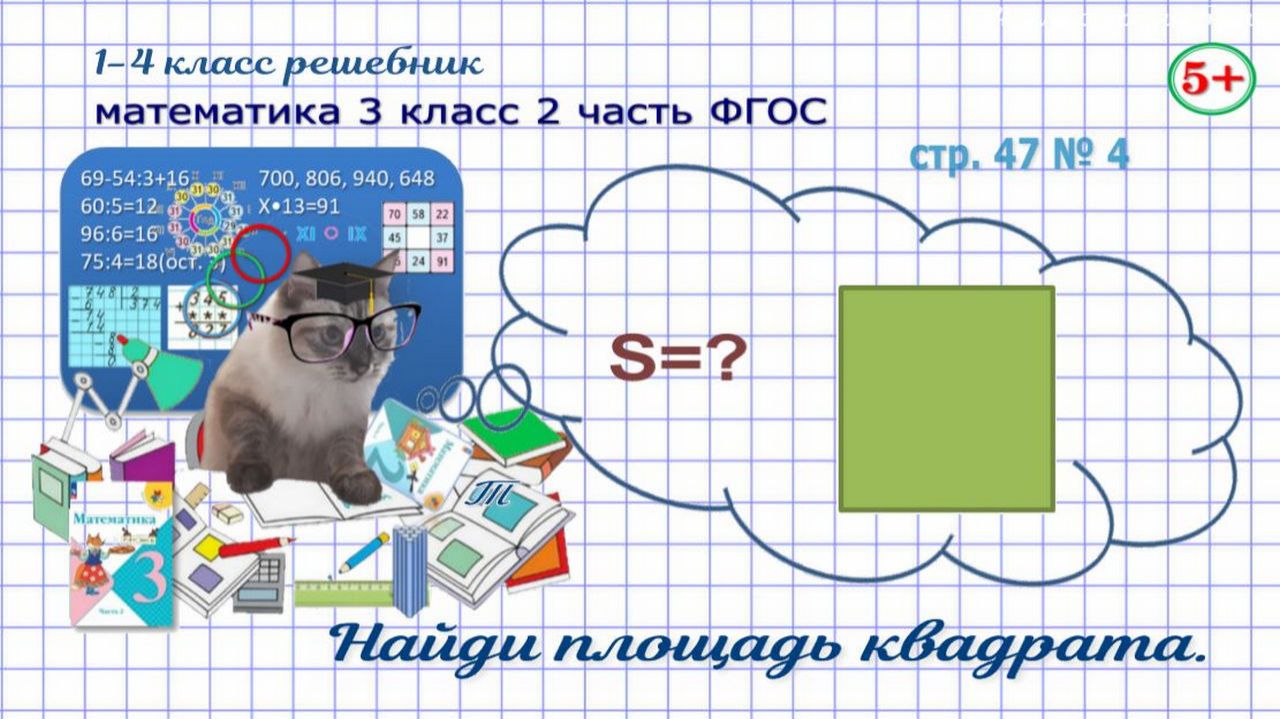 Стр. 47 № 4 математика 3 класс 2 часть найди площадь квадрата Фгос Моро гдз