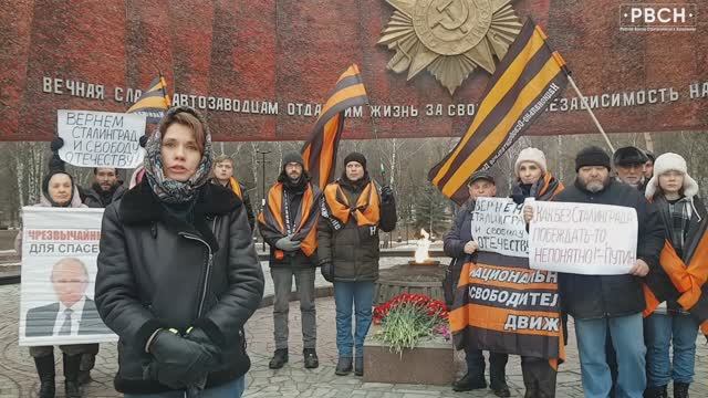Общероссийская акция в честь Победы в Сталинградской битве «Вернём Сталинград и суверенитет Отечеству!» (https://t.me/rvsn_na_washington/18535) у Вечного огня в Нижнем Новгороде. #Сталинград @rvsn_na_washington