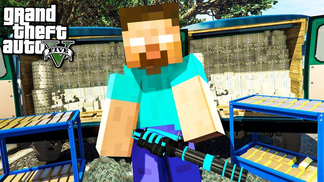 ГТА 5 МОДЫ ХЕРОБРИН ОГРАБИЛ БАНК НА 10.000.000.$ МАЙНКРАФТ ОБЗОР МОДА В GTA 5! ИГРЫ ВИДЕО MODS