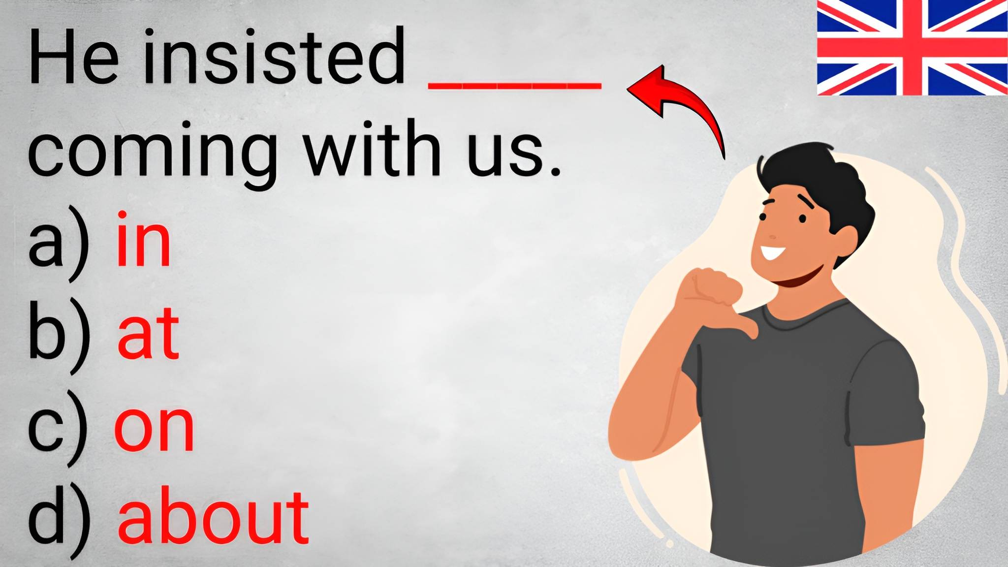 Индивидуальные уроки с Владимиром 👉 englishdragonclub700k@gmail.com 👉 https://t.me/EnglishDragonClub Ссылка на приобретение курса “Profound” 👉 https://app.iq.academy/course?id=1056 Ссылка на приобретение "Light" курса 👉 https://app.iq.academy/course?id=1058 В этом видео мы приглашаем вас пройти увлекательный тест по английскому языку, чтобы проверить свои знания грамматики, а именно предлогов in, at, on, with, и about. Эти предлоги часто вызывают затруднения, даже у продвинутых изучающих английский язык, поэтому правильное их использование — важный навык. Готовы проверить свои знания? Мы подготовили 10 вопросов, в которых вам нужно будет выбрать правильный предлог из предложенных: in, at, on, with, или about. Вопросы охватывают различные контексты, такие как место, время, отношения и ситуации, чтобы убедиться, что вы понимаете, как и когда использовать каждый предлог. По мере прохождения теста мы будем объяснять правильные ответы и приводить примеры, чтобы вы могли лучше запомнить правила использования этих предлогов. Если вы сделаете ошибки, не беспокойтесь — мы разберем каждый вопрос подробно, чтобы вы могли учиться на своих ошибках и улучшить свои навыки. В конце видео мы подведем итоги и посмотрим, сколько правильных ответов вы смогли дать. Сможете ли вы набрать 9 или даже 10 правильных ответов? Это отличный шанс проверить себя и узнать, насколько хорошо вы владеете английскими предлогами! Так что присоединяйтесь к нам в этом тесте, и давайте вместе улучшать ваш английский язык, узнавая что-то новое и интересное! Поддержать канал https://yoomoney.ru/to/4100117634603442 Также подпишись на наш открытый канал в телеграмм, много интересного и полезного https://t.me/EnglishDragonClubOpen