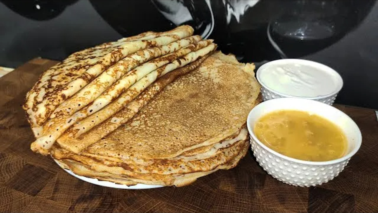Сегодня готовим Тонкие и вкусные домашние БЛИНЧИКИ! Ловите САМЫЙ ЛУЧШИЙ быстрый и вкусный РЕЦЕПТ БЛИНОВ! По-этому рецепту можно приготовить блины на молоке, блины на кефире, блины на молоке с кефиром! Получаются КРУЖЕВНЫЕ, ТОНКИЕ и очень ВКУСНЫЕ БЛИНЫ! Тесто для блинов готовится необычным способом – с помощью пластиковой бутылки! Блины в бутылке готовить проще, быстрее, и не надо мыть гору посуды! Так же можно не жарить все тесто сразу, а поставить в холодильник блинчики в бутылке (тесто) и печь блины по мере надобности, например аппетитные горячие блинчики утром на завтрак! По этому рецепту блинчики получаются даже у тех, кто блины никогда не готовил) Ингредиенты: - Молоко 300 мл, - Кефир 300 мл, - Мука 13 ст.л - Яйцо 2-3 шт, - Подсолнечное масло 3 ст.л, - Сахар 2-3 ст.л, - Соль половину ч.л, - Соды 1/5 чайной ложки(сбрызнув чуть уксусом). Подписывайтесь на наши соц.сети Мы в Инстаграм https://www.instagram.com/sancho_ranch?r=nametag Мы в TikTok https://www.tiktok.com/@rancho_u_sancho?lang=ru Мы в ВК https://vk.com/sanchos_ranch Мы в Facebook https://www.facebook.com/sanchos.ranch Мы в Яндекс Дзен https://zen.yandex.ru/profile/editor/id/5e955d1873a6de18d92af9cc #Блинчики#блины#блинывбутылке#блинынамасленицу