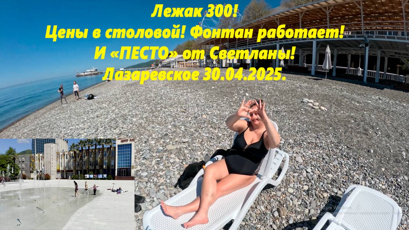Лежак 300! Цены в столовой! Фонтан работает! И "Песто" от Светланы! Лазаревское 30.04.2025.