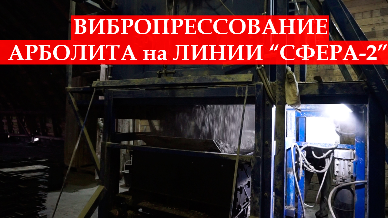 Как происходит вибропрессование арболитовой смеси на производственном комплексе "Сфера-2".