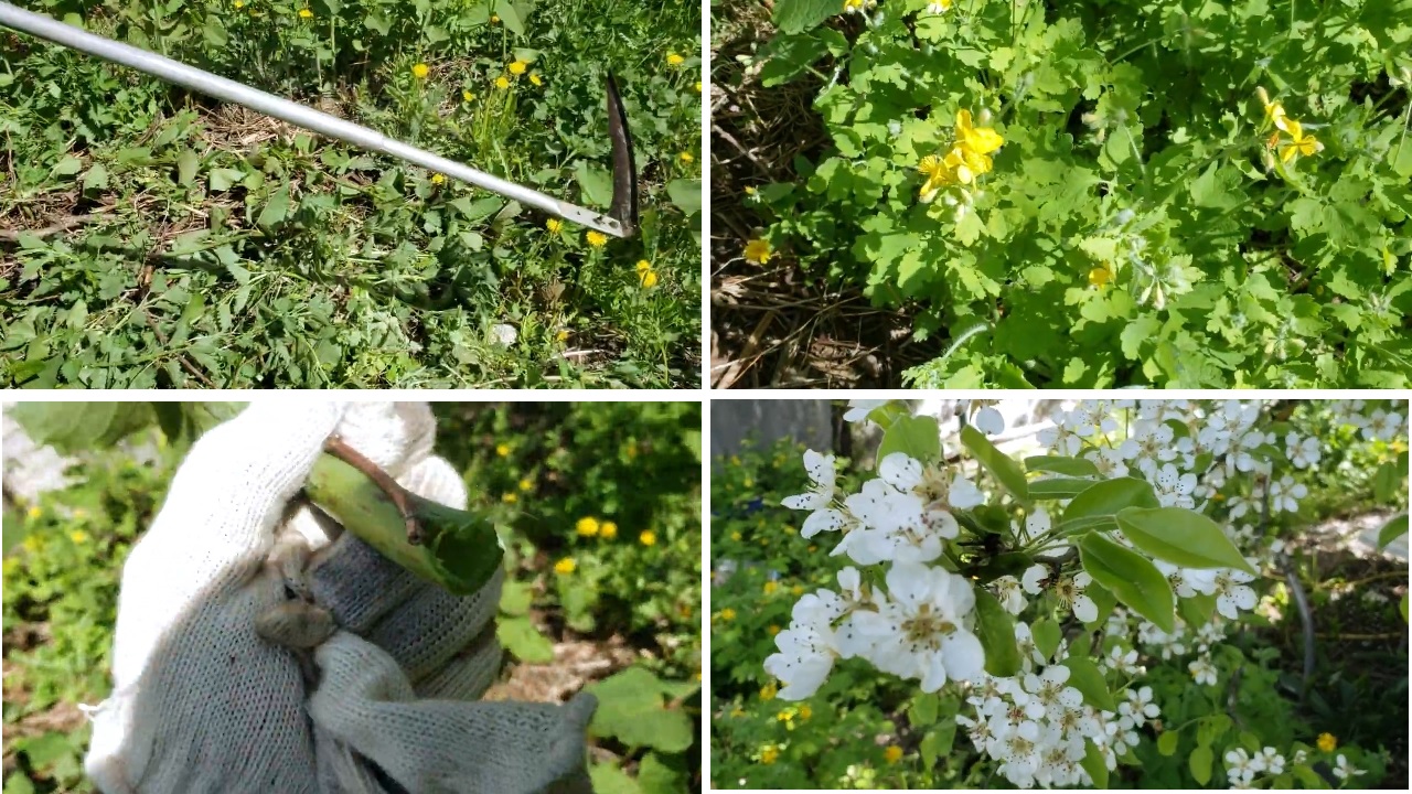 240501 Кошу траву и бамбук косой Травушка муравушка коса Чистотел Груша расцвела скашиваю покос косу