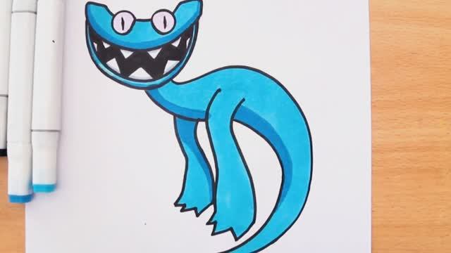 Как нарисовать и раскрасить Циана — небесно-голубого монстра, похожего на велоцираптора или двуногого дракона, который появляется во второй главе видеоигры Rainbow Friends. Для этого рисунка использовали только маркеры и линейку, чтобы нарисовать глаза.
