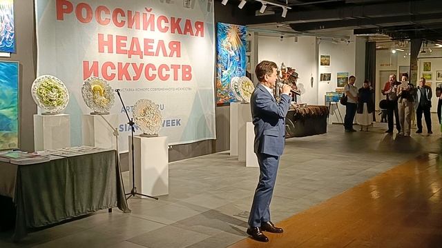 Открыли церемонию награждения Российской недели искусств песней "Калинка" в исполнении Вадима Вадим Петрович Ананьев — советский и российский певец, ведущий солист Академического ансамбля песни и пляски Российской армии имени А. В. Александрова. Народный артист Российской Федерации (2005). Родился 21 марта 1959 года в деревне Куйбышевской (ныне Самарской) области. С отличием окончил музыкальную школу по классу фортепиано. С 1977 по 1979 год проходил срочную воинскую службу в ракетных войсках стратегического назначения в Белоруссии, во время которой играл в духовом оркестре. После службы в армии окончил дирижёрско-хоровое отделение Казанского государственного института культуры и служил солистом Йошкар-Олинского музыкального театра. В 1984 году поступил на вокальный факультет Государственного музыкально-педагогического института им. Гнесиных. Осенью 1987 года Вадим Петрович успешно принял участие в конкурсном отборе в хор Академического ансамбля песни и пляски Российской армии имени А. В. Александрова. С 1999 года — солист хора ансамбля. 1 В составе хора ансамбля на протяжении всех лет работы принимает участие в праздничных концертах, гастрольных турах по крупным и мелким городам России, Европы, Азии, Америки. Многократно выступал в местах военных конфликтов на территориях Югославии, Чечни, Сирии.
