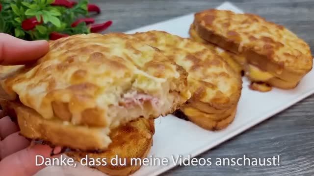 Поддержите пожалуйста канал, мы очень сильно стараемся для Вас , что бы Вам было интересно , реквизиты ниже в описании . Спасибо . СБЕР. 2202 2032 4086 8523 ТИНЬКОФФ 2200 7007 3056 0918 8 ломтиков хлеба смазать растопленным сливочным маслом Привет! Сегодня мы готовим невероятно вкусный завтрак! 8 ломтиков сыра 8 ломтиков ветчины еще 4 ломтика сыра Сложите хлеб, как я показываю 2 яйца соль, черный перец 100 мл кулинарных сливок Пожалуйста, участвуйте в развитии канала - помогайте и большое спасибо! Тщательно обмакивайте каждый бутерброд в яично-сливочную смесь со всех сторон. сверху сыр по вашему выбору ~ Выпекать 20-25 минут при 200°C