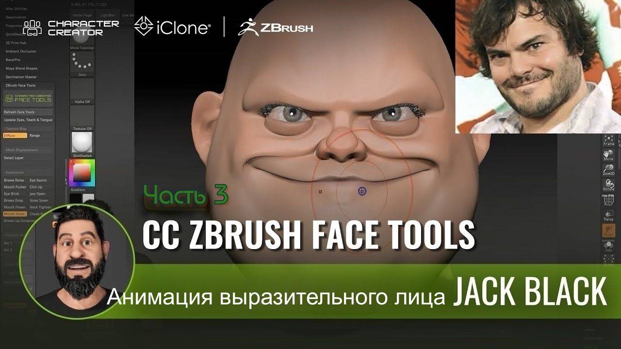 Анимация выразительного лица Джека Блэка: CC Zbrush Face Tools & Character Creator. Часть 3