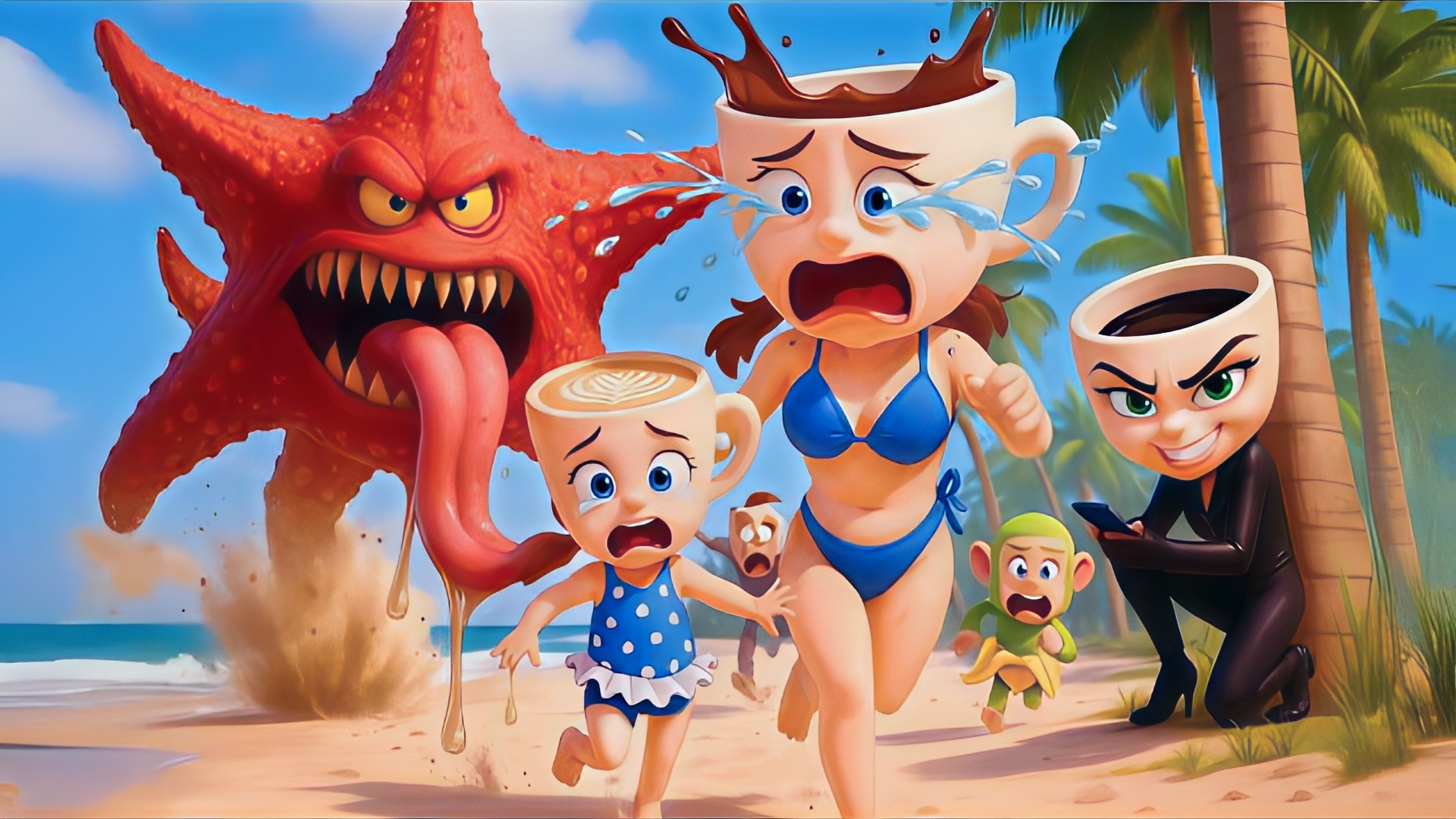 Балерина Капучина, преследуемая морской звездой-монстром, с малышкой Балериной Капучиной