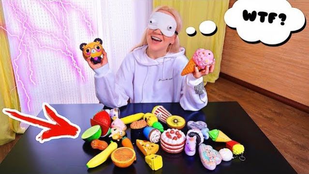 ЧЕЛЛЕНДЖ УГАДАЙ СКВИШИ С ЗАКРЫТЫМИ ГЛАЗАМИ 🙈 GUESS THE SQUISHY TOY CHALLENGE МОЯ КОЛЛЕКЦИЯ ИГРУШЕК