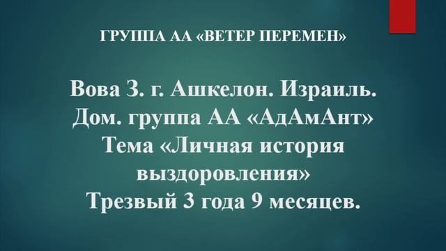 Вова З. г. Ашкелон, Израиль. Тема "Личная история выздоровления"