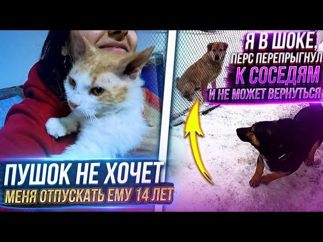 Персик прыгнул к соседям и назад не может Пушок очень душевный кот и не хочет меня отпускать
