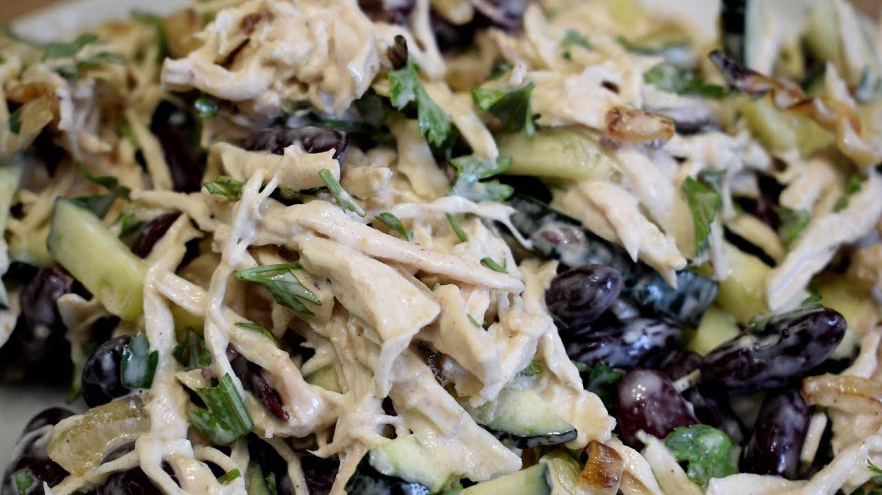 Очень вкусный сытный салат с фасолью и куриной грудкой. Все ингредиенты отлично сочетаются. Рецепт: отварная куриная грудка - 250 гр. (1шт.) лук - 1 шт. растительное масло подсолнечное - 1-2 ст.л. консервированная фасоль - 1 банка (400 гр.) огурец свежий - 2 шт. (250 гр.) петрушка майонез - 2-3 ст.л. соль, лимонный перец по вкусу ****************** #салат #рецептсалата #салатсмясом #сытноетв #салатсфасолью #оченьвкусныйсалат #салаткурица #салатсогурцом #простойрецепт