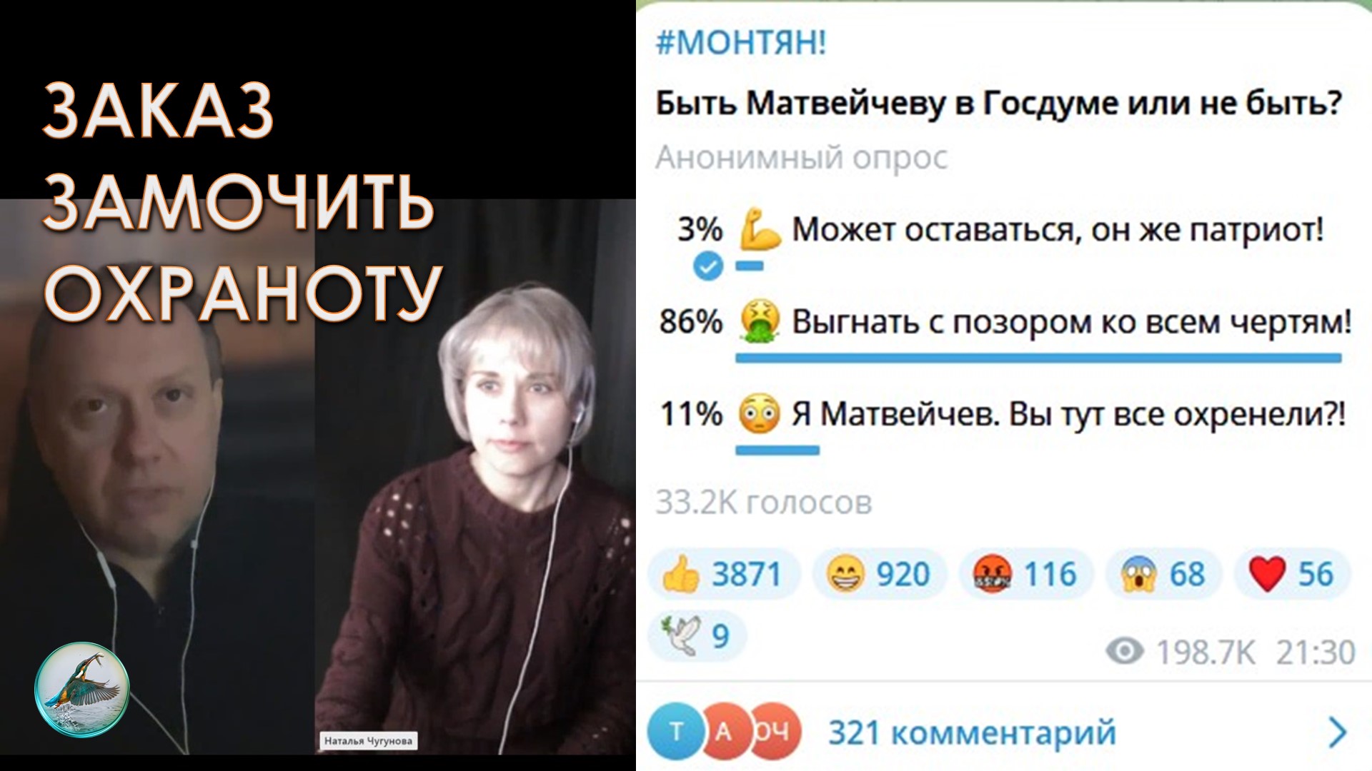 0:00 Хрюкание турбопатриотов 0:45 Биография Монтян. 4:23 Почему Поддубному добавилось 40 тыс подписчиков 5:33 Чему учили американцы наших журналистов? 23:30 Когда можно и когда нельзя критиковать государство? 24:20 Где был Матвейчев во время присоединения Крыма? 25:00 Почему Матвейчев пропустил голосования в Думе? 27:15 Почему врёт Делягин? 36:30 Почему Колмогоров восхищается Монтян 38:30 Почему Путин не вводит цензуру? 48:16 Хороший политик не тот кто заводит стадион, а тот, который выйдет к ревущему стадиону и через минуту стадион будет молчать. Хороший политик гасит страсти и возвращает к разуму 49:40 Почему СМИ не говорит про заявления Бастрыкина об изменении конституции ZИМОРОДОК и КУПНО ЗА ЕДИНО ограничили, подпишитесь пжл на все ресурсы, чтобы не потеряться: https://t.me/zimorodok52 https://www.youtube.com/c/ЗИМОРОДОК/v... https://vk.com/zimorodok52 https://zen.yandex.ru/zimorodok52?lan... https://studio.rutube.ru/videos https://ok.ru/zimorodok52 В настоящее время формируется коллективный иск в Верховный суд по событиям 90-х, он насчитывает около 300 тысяч соистцов, присоединиться к нему можно по ссылке: https://forms.yandex.ru/u/62953d184013ae922c147f4f/ Главштаб тел: +7 926 974-34-33 Н.Новгород тел: +7(987)747-19-78 #БЕЛРУСИНФО_Дзержинск #Матвейчев #монтян #колмогоров #делягин Подпишитесь на новый канал КУПНО ЗА ЕДИНО: https://www.youtube.com/@kupnozaedino/videos Подпишитесь на канал БЕЛРУСИНФО Дзержинск: https://www.youtube.com/@belrusinfodzerzhinck/videos https://t.me/belrusinfodzerzhinck Подпишитесь на канал ZИМОРОДОК: https://t.me/zimorodok52 https://www.youtube.com/c/ЗИМОРОДОК/v... https://vk.com/zimorodok52 https://zen.yandex.ru/zimorodok52?lan... https://studio.rutube.ru/videos Подписывайтесь на БЕЛРУСИНФО Дзержинск! https://www.youtube.com/c/НОДДзержинск Подписывайтесь на БЕЛРУСИНФО! https://www.youtube.com/c/belrusinfonovosti