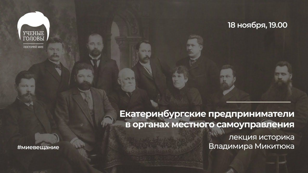 Лекция историка, старшего научного сотрудника Института истории и археологии УрО РАН Владимира Петровича Микитюка посвящена деятельности екатеринбургских предпринимателей в органах местного самоуправления – городской думе и уездном земстве, а также в разных попечительских советах и в других выборных органах. Основной упор будет сделан на деятельности И.И. Симанова на посту городского головы. Кроме того, будет рассказано о достижениях на общественном поприще других предпринимателей (В.Я. Атаманова, И.К. Анфиногенова, М.А. Нурова и др.).