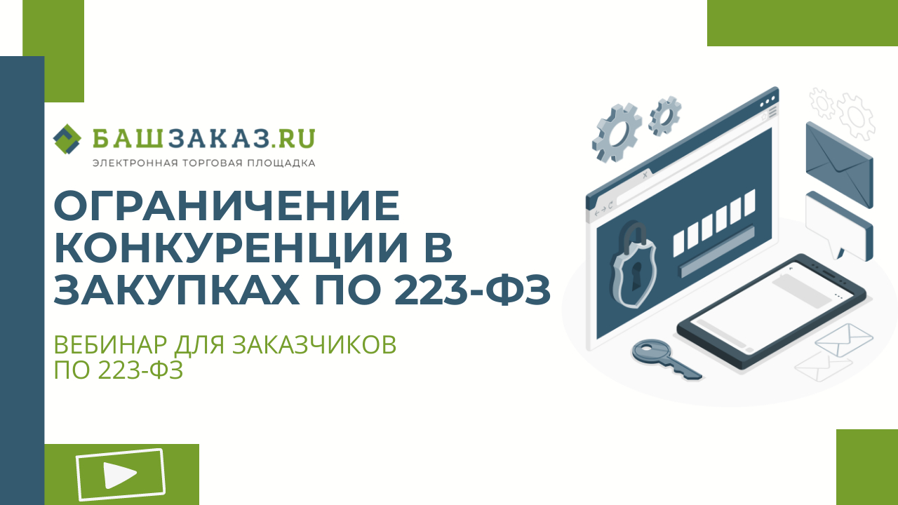 В практике закупок отдельных видов юридических лиц (223-ФЗ) встречаются случаи, когда по итогам рассмотрения жалобы участника, антимонопольный орган обвиняет заказчика в намеренном недопущении, устранении или ограничении конкуренции. Подчас руководствуясь соображениями экономической целесообразности, желанием приобрести качественный товар или результат работ, заказчики, сами того не подозревая, включают в свои документы формулировки, которые могут быть квалифицированы как направленные на необоснованное ограничение конкуренции. Чтобы не допустить таких ошибок, важно понимать, что именно в действиях заказчика указывает на подобные нарушения. В рамках данного семинара будет рассмотрена процедура оспаривания действий заказчиков на основании положений ФЗ «О защите конкуренции» и практика признания наличия Положении о закупках, в извещении, проекте договора, в закупочной документации признаков ограничения конкуренции, в том числе в случае подготовки критериев и порядка оценки с ориентиром на конкретного участника. Данный вебинар будет интересен специалистам отделов закупок, руководителям заказчиков, а также представителям участников закупочных процедур. Регистрация на бесплатные вебинары для заказчиков по 223 - ФЗ https://lp.bashzakaz.ru/webinar