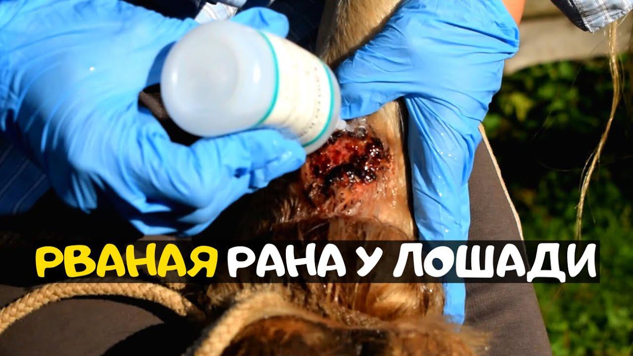 ЛЕЧИМ РВАНУЮ РАНУ НА НОГЕ У ЛОШАДИ