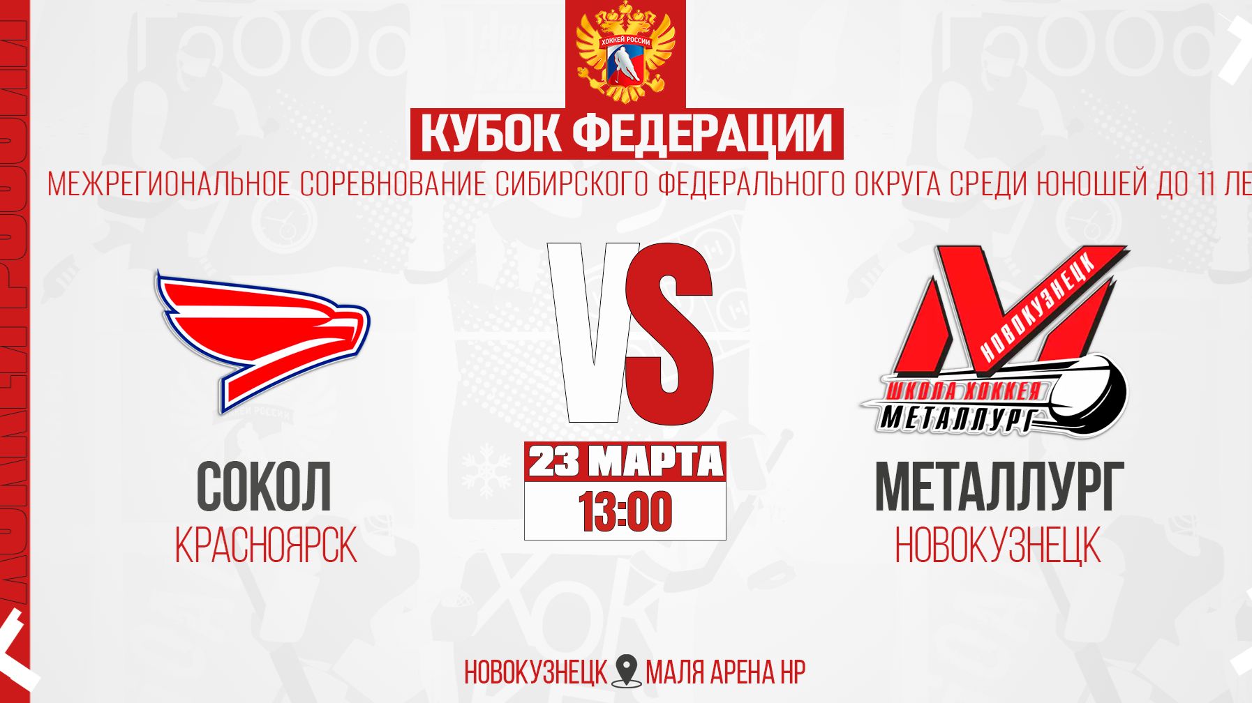 ПРЯМАЯ ТРАНСЛЯЦИЯ МАТЧА 23.03.2026г. в 13:00 СОКОЛ (Красноярск) VS МЕТАЛЛУРГ (Новокузнецк) КУБОК ФЕДЕРАЦИИ CРЕДИ ЮНОШЕЙ 2015 г.р. СИБИРСКИЙ ФЕДЕРАЛЬНЫЙ ОКРУГ САЙТ ПЕРВЕНСТВА (РЕЗУЛЬТАТЫ, СТАТИСТИКА): http://sfo.fhr.ru СТАДИОН: МАЛАЯ АРЕНА НР КОММЕНТАТОРЫ: Сергей Пичугин ТРАНСЛЯЦИЯ НА YOUTUBE: https://youtube.com/live/ecqmHyln5fw?feature=share ТРАНСЛЯЦИЯ В СООБЩЕСТВЕ VK: https://vkvideo.ru/video-229078074_456239797?sh=4&list=42c72a5c6dcaf4def5