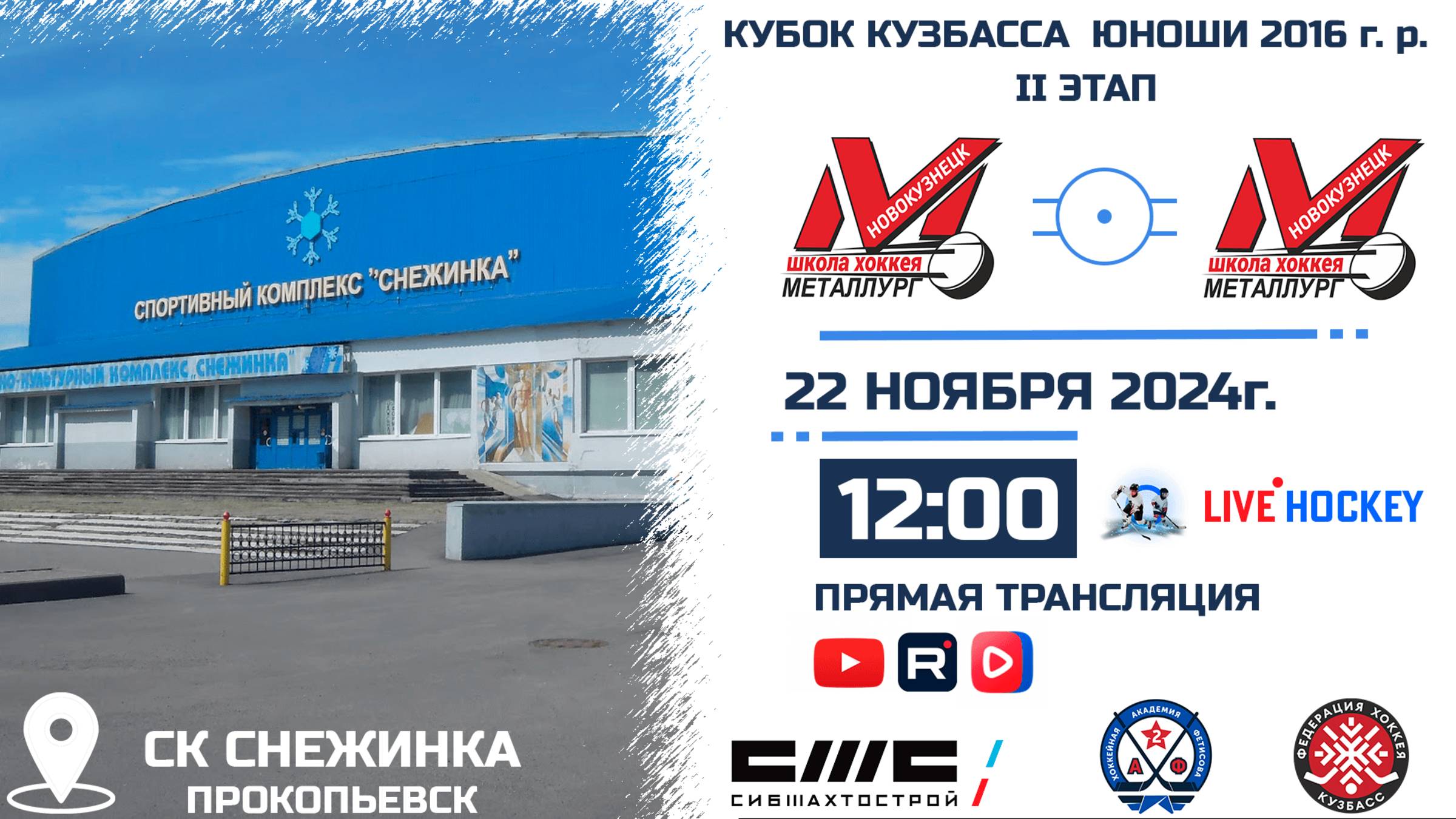 ПРЯМАЯ ТРАНСЛЯЦИЯ МАТЧА 22.11.2024г. 12:00 ДЮСШ МЕТАЛЛУРГ (Новокузнецк)-МЕТАЛЛУРГ (Новокузнецк) КУБОК КУЗБАССА СРЕДИ ЮНОШЕЙ 2016 г.р. ССЫЛКИ НА МАТЧИ: https://bit.ly/TYTCLICK СТАДИОН: СК СНЕЖИНКА КОММЕНТАТОРЫ: Сергей Пичугин, Антон Сергеев ТРАНСЛЯЦИЯ НА YOUTUBE: https://youtube.com/live/7IO5k0HhRP4?feature=share