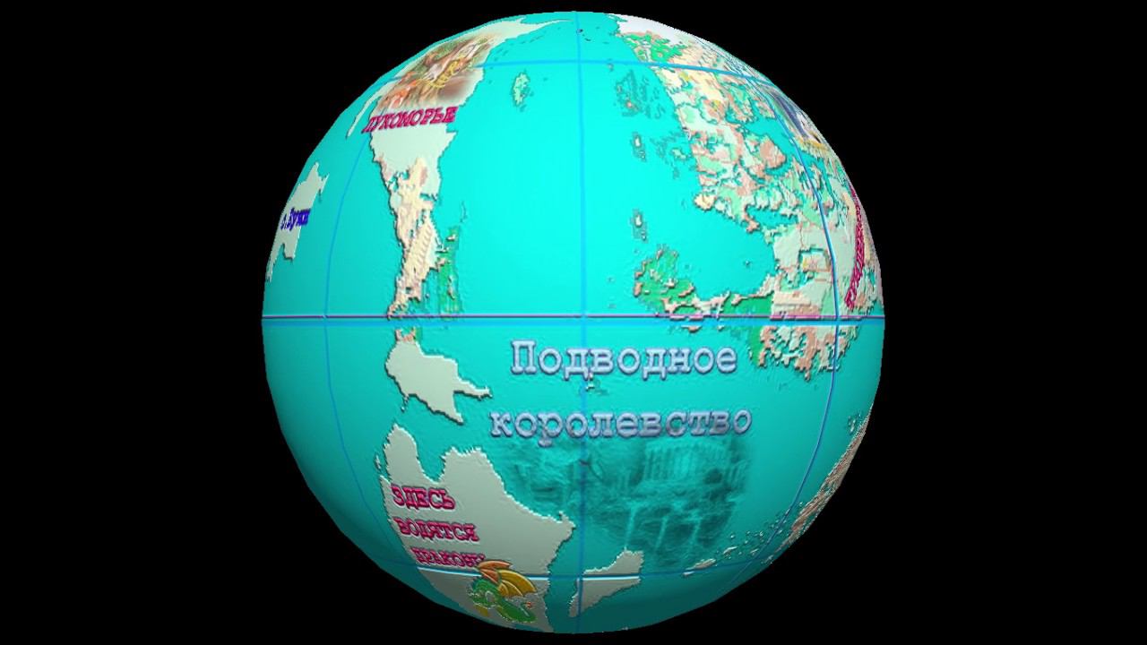 Вращающийся глобус со сказочными странами на черном фоне Заготовка для мероприятий