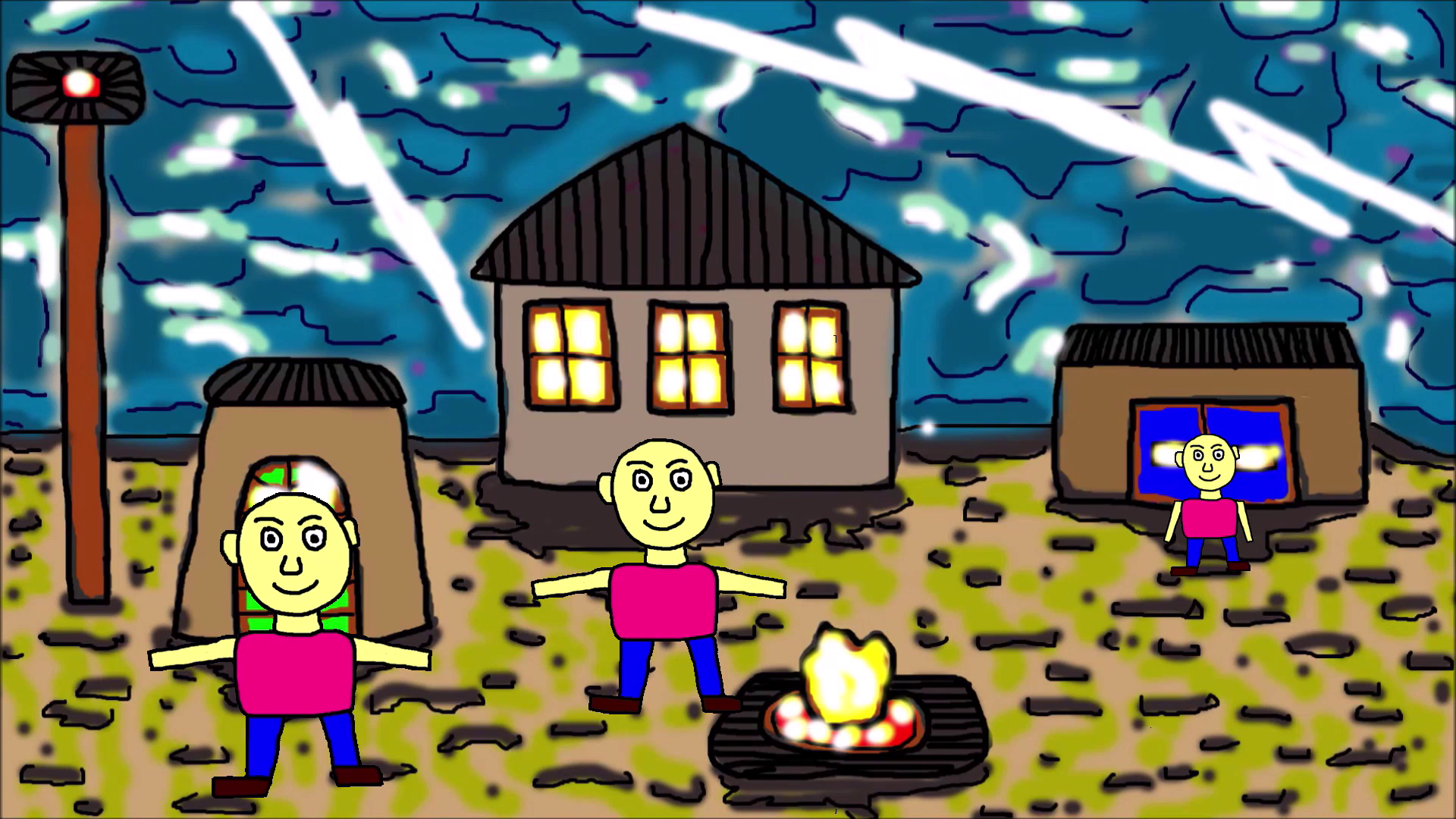 Анимационный рисунок Геннадия Горина: Человечки возле дома и молния
