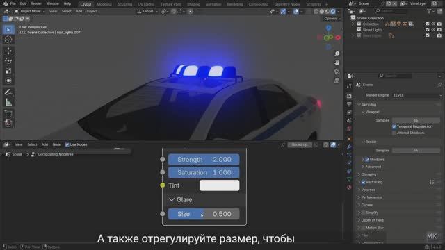 Как сделать эффект мигалки в Блендер.