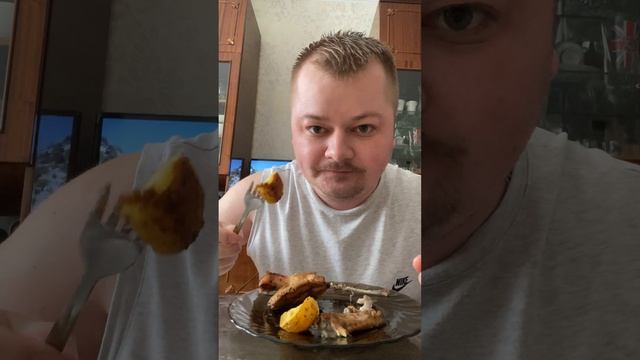 Сочный мукбанг: Крылышки и картошка в чесночном соусе!