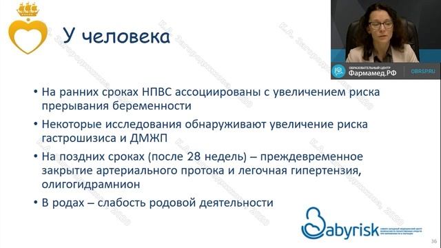 Видеозапись онлайн-семинара "Чем нельзя лечить беременных" Дата проведения: 18.08.20 в 20:00 мск Организатор: http://obrfm.ru/ Докладчик: Загородникова Ксения Александровна Заведующая отделом клинической фармакологии, доцент лечебного факультета ФГБУ «НМИЦ им. В.А. Алмазова» Минздрава России, ведущий научный сотрудник ЦНИЛ СЗГМУ им. И.И. Мечникова, к.м.н., PhD О семинаре: Участникам онлайн-семинара будет представлена информация о том, когда лекарства действительно могут нанести вред организму плода и когда такой эффект невозможен. Будут обсуждаться ответственность, которую может принять на себя врач, ведя беременную с сопутствующей патологией, и механизмы юридической защиты принятия решений. Будут рассмотрены примеры клинических ситуаций, когда определенные состояния у беременной без лечения оказывают больше вреда для развития плода, чем лекарственная терапия.