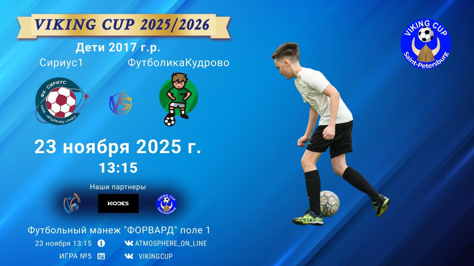 VIKING CUP среди команд 2017 г.р. (U8), Поле 1 23 ноября 2025 САНКТ-ПЕТЕРБУРГ, ФЦ "Форвард" ФК "Сириус1" - ФК "ФутболикаКудрово"/VIKING CUP, Игра №5, 23-11-2025 13:15