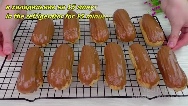 Поддержите пожалуйста канал, мы стараемся для Вас , что бы Вам было интересно ,смешно и уютно! Реквизиты ниже в описании .Заранее благодарны Вам! СБЕР. 2202 2032 4086 8523 ТИНЬКОФФ 2200 7007 3056 0918 Идеальные эклеры! Удивите всех этим потрясающим десертом! Просто и очень вкусно! Ингредиенты : (11 - 12 шт) Заварной крем: Яйца - 2 шт Сахар - 70 г / 2.4 oz Кукурузный крахмал - 30 г / 1.0 oz Молоко - 500 мл Сливочное масло - 80 г / 2.8 oz Ванильный сахар - 1 ч.л. Заварное тесто: Вода - 160 г Сливочное масло - 80 г / 2.8 oz Соль - 1/4 ч.л. Сахар - 1 ч.л. Мука - 120 г / 4.2 oz Яйца 2 - 3 шт Глазурь: Шоколад - 100 г / 3.5 oz Растительное масло - 2 ст.л. Выпекать при 170°C (338~°F) 40 - 45 минут