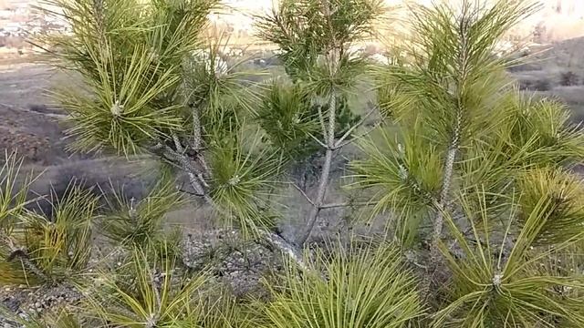Крымские сёла в долине через веточки крымской сосны, Симферопольский район