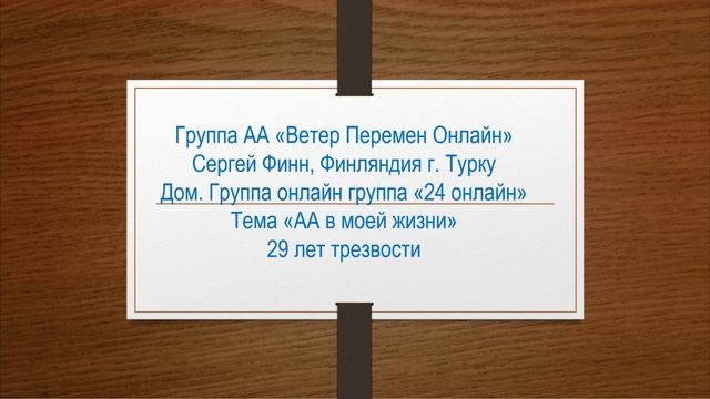 Сергей Финн, Финляндия г. Турку. Тема "АА в моей жизни" 29 лет трезвости.