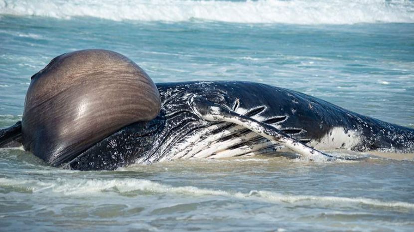 Горбатый кит повторно застрял на мелководье в Балтийском море