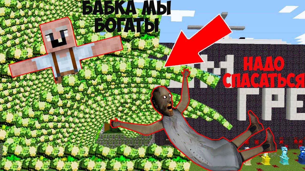 ДЕД И ГРЕННИ ВЫЖИВАЮТ ПРОТИВ ЦУНАМИ ИЗ ДЕНЕГ В МАЙНКРАФТ НОВАЯ КОНЦОВКА GRANNY 3